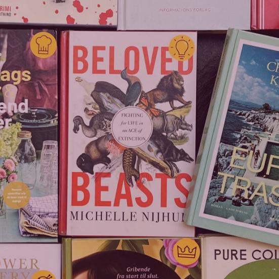 Mand læser bog med bøger i baggrunden